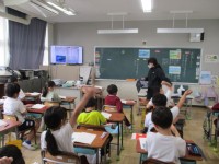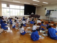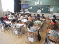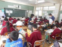 5年生は、話の場面をくわしく聞き取る学習をしていました。登場人物の好きなものを聞き取った後、“What's do you like?”に答えていました。好きな教科は「理科」、好きなスポーツは「ベースボ...