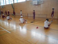 眠そうにしている鬼石小っ子も校庭に出て走り始めれば、頭もからだもしっかり目覚めます。1年生も準備体操も上手になり、そこから一生懸命取り組みます。音楽に乗ってみな元気に走り出しました。