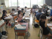 友達と協力してお話をつくる活動です。1文ずつ文を付け足していきます。なめらかに繋がったり,思わぬ展開になったり,とても楽しそうに取り組んでいました。