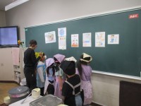 週始まりの2校時目、1年生は算数の学習です。まずは名前を書くところから、3ページ分の名前を書いた後に、1ページ目のイラストから、仲間分けを行っていました。ぶたさん、かえるさん・・・・など仲間分けをした...