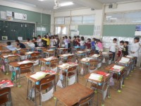 まずはじめに、剣道の大会において3・4年生の部で優勝した4年生児童、1・2年生の部で準優勝した1年生児童の表彰をしました。2人の名前が呼ばれると自然に拍手が湧き上がりました。中には「おめでとう」と声を...
