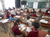 3年生は、新しい漢字を学習していました。3年生になると、難しい漢字が増えますが、書き順や読み方もしっかり確認しながら書いていました。丁寧に書いている友達のことを「上手だね!と、賞賛していました。丁寧に...