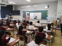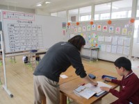 1年生は、6~10までの数字の練習をしていました。数字を書いたり、たんぽぽや鳥の数を正しく書いたりしました。「8」や「9」の書き順も初めての1年生は難しいです。「0は上から書き始めるんだね。」と、初め...