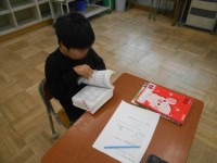 ワークを使って、学習を振り返っています。ワークの問題もよく読まないと難しいのですが、あきらめずに取り組んでいました。