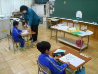 たくさんのひらがなを習い、書くことも読むこともできるようになりました。今日は、あいうえおの歌をみんなで声をそろえて音読。大きな口を開けて上手に音読できました。