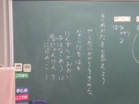 「家庭の日」のポスターを描きました。はじめに、「家族で過ごした楽しい思い出」には、どんなことがありましたか?と質問したところ、子ども達は、黒板に書き切れないほどのたくさんの思い出を話してくれました。